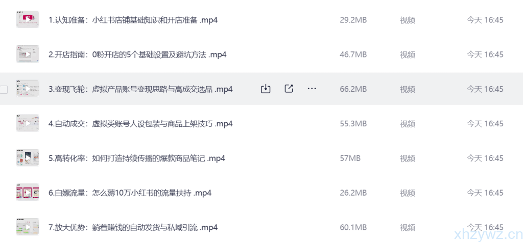 这是一套小红书虚拟店铺从 0 到变现的全流程视频资源,一共 7 个视频,覆盖了从开店准备到自动盈利的所有核心环节: